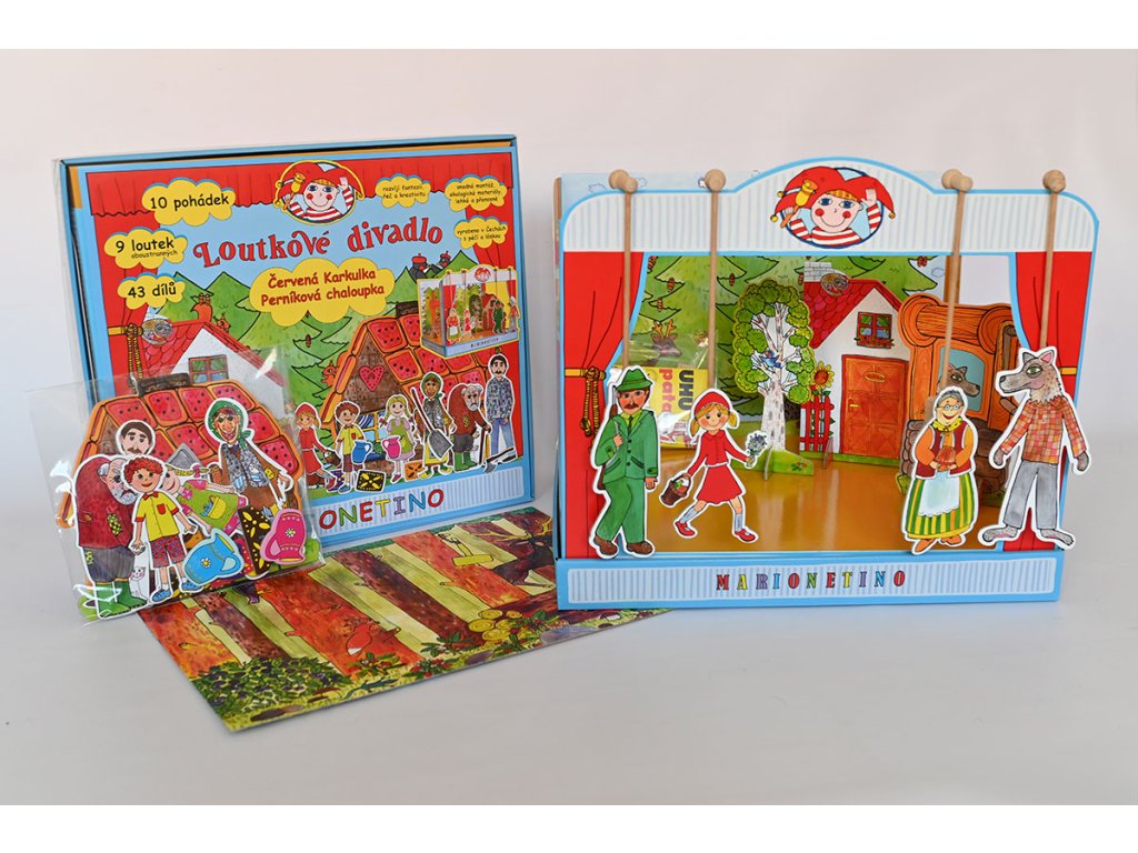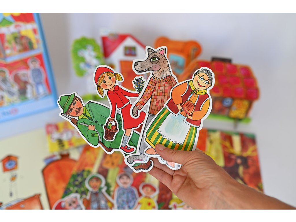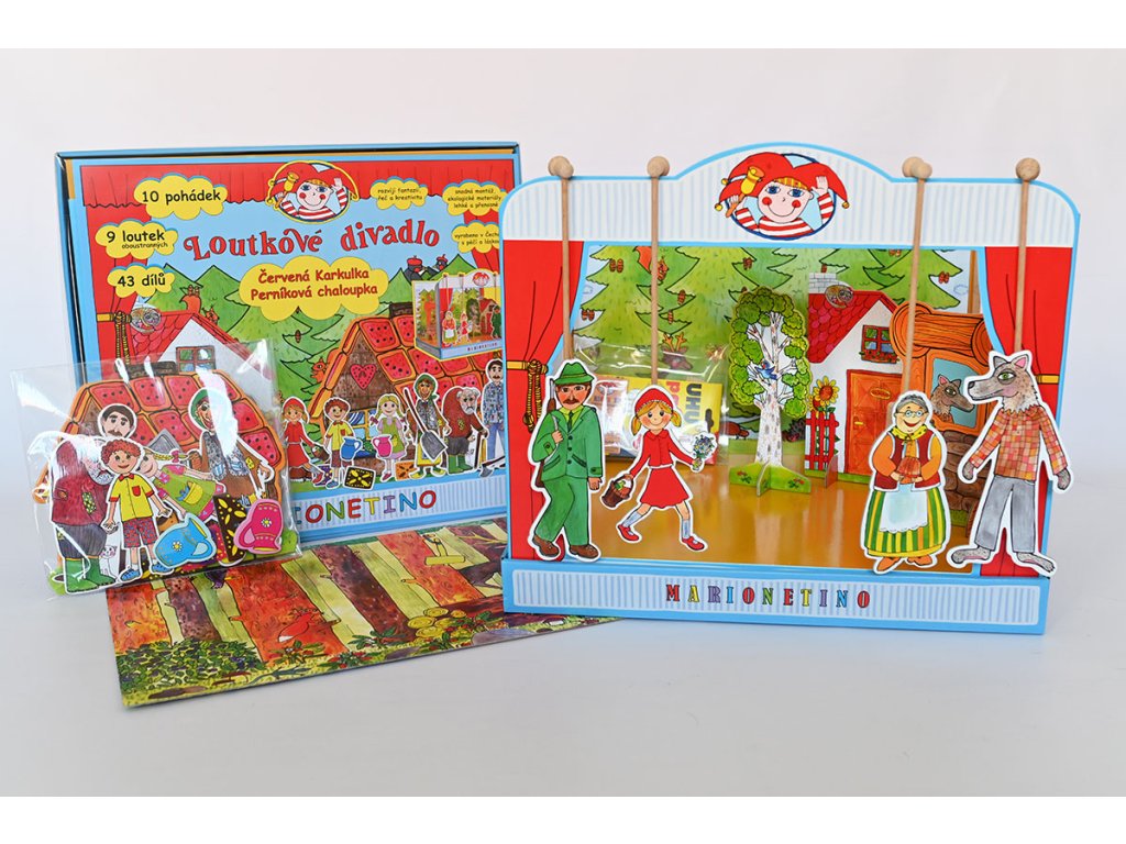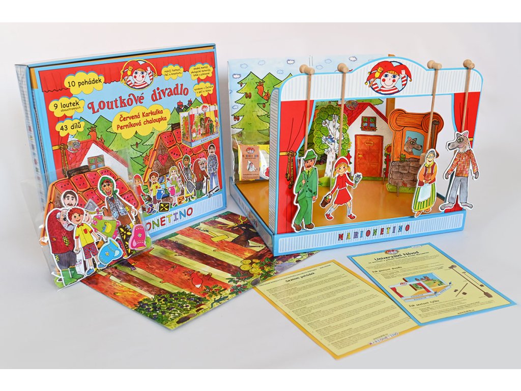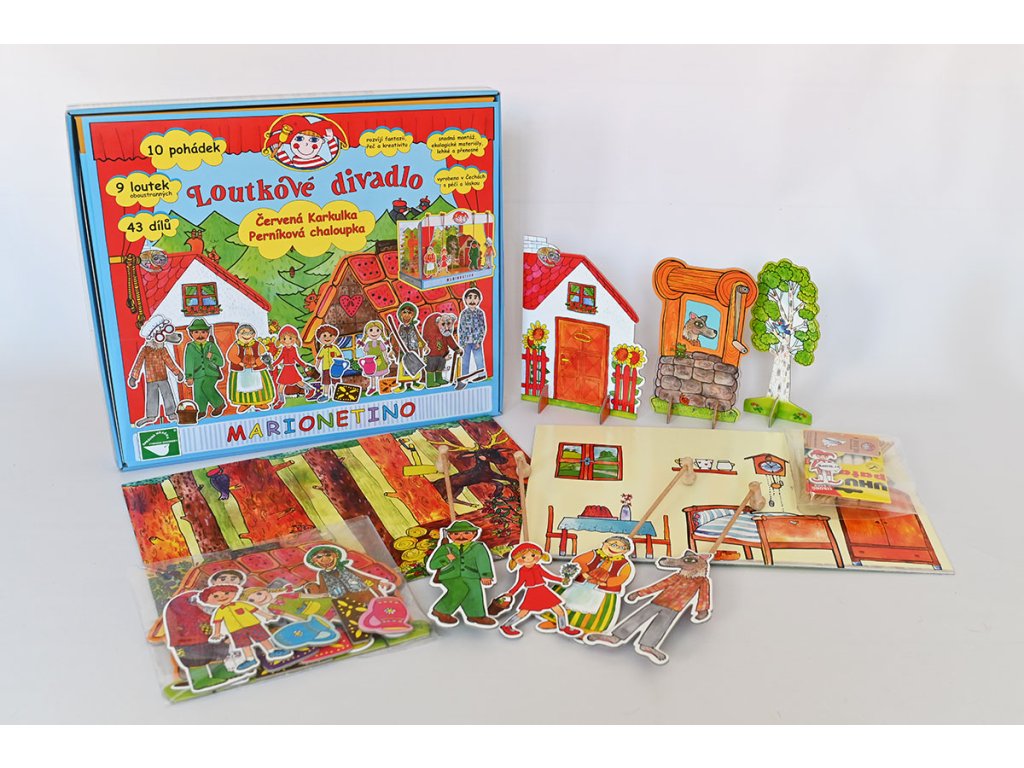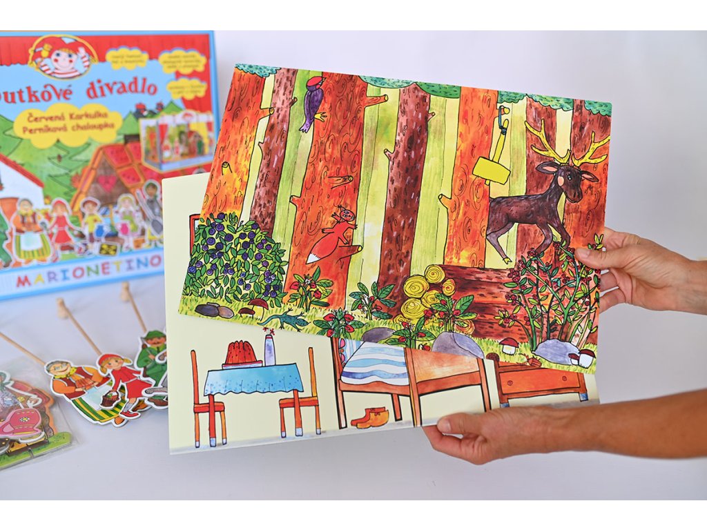 Súčasťou balenia sú bábky, kulisy, rekvizity a scénické doplnky, vďaka ktorým môžu deti hneď začať hrať. Dve rozprávky – Červená Čiapočka a Perníková chalúpka – tvoria základ, z ktorého vzniká viacero príbehov a herných variantov.