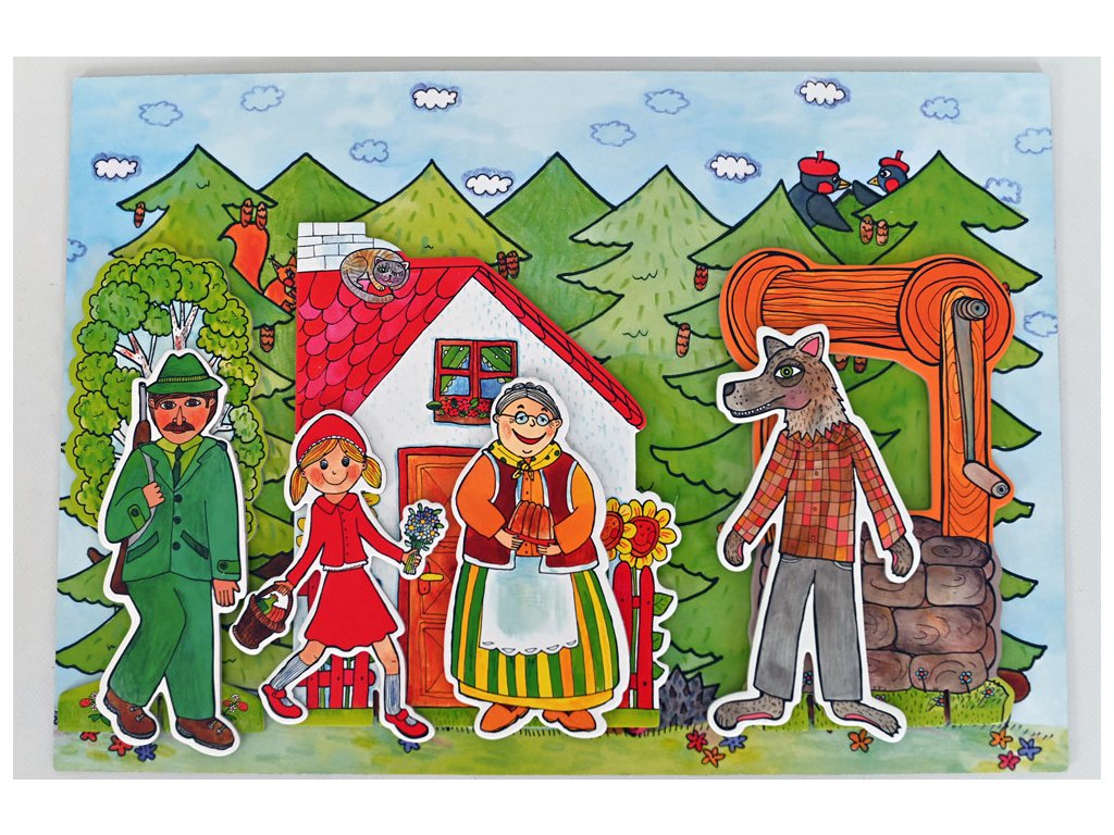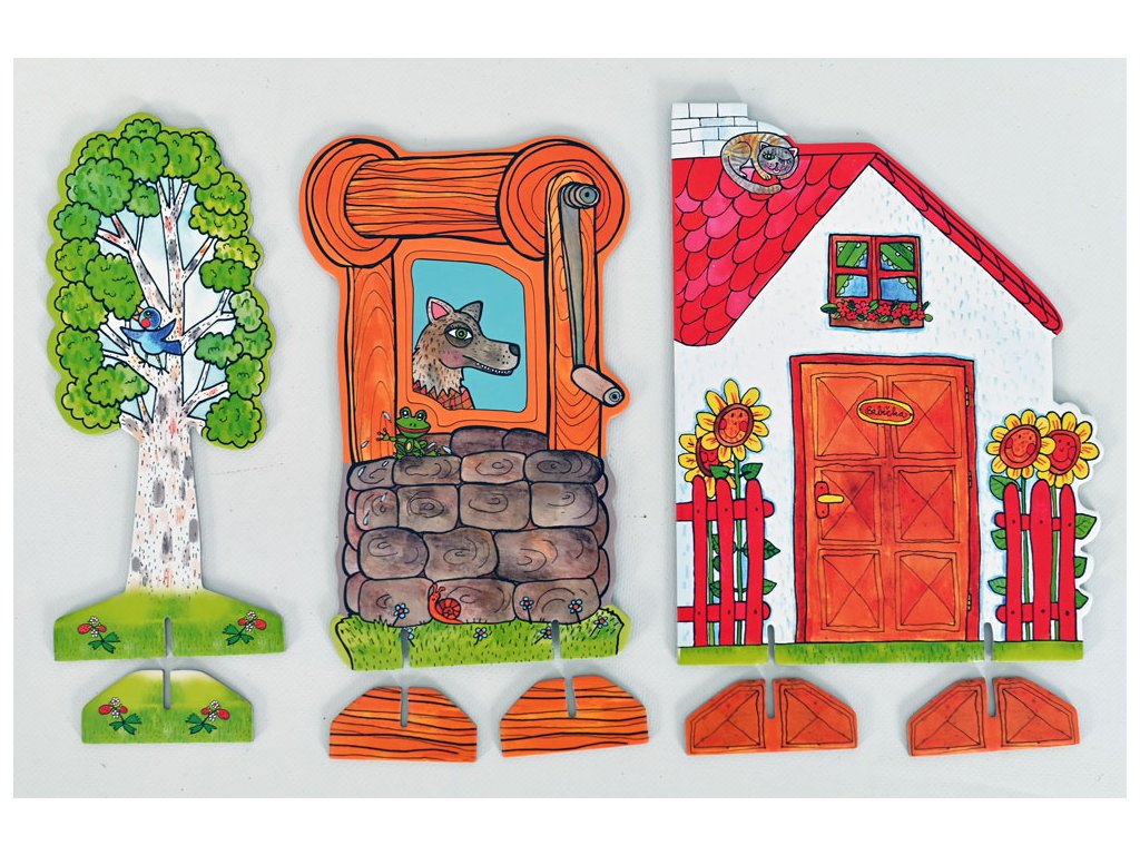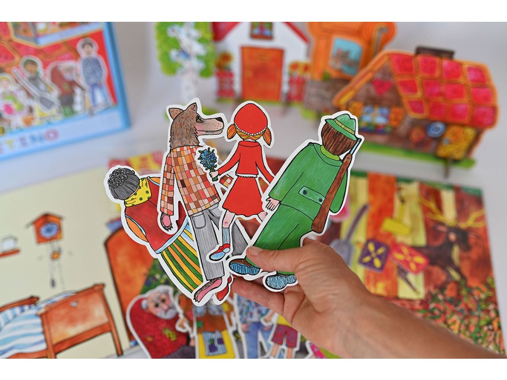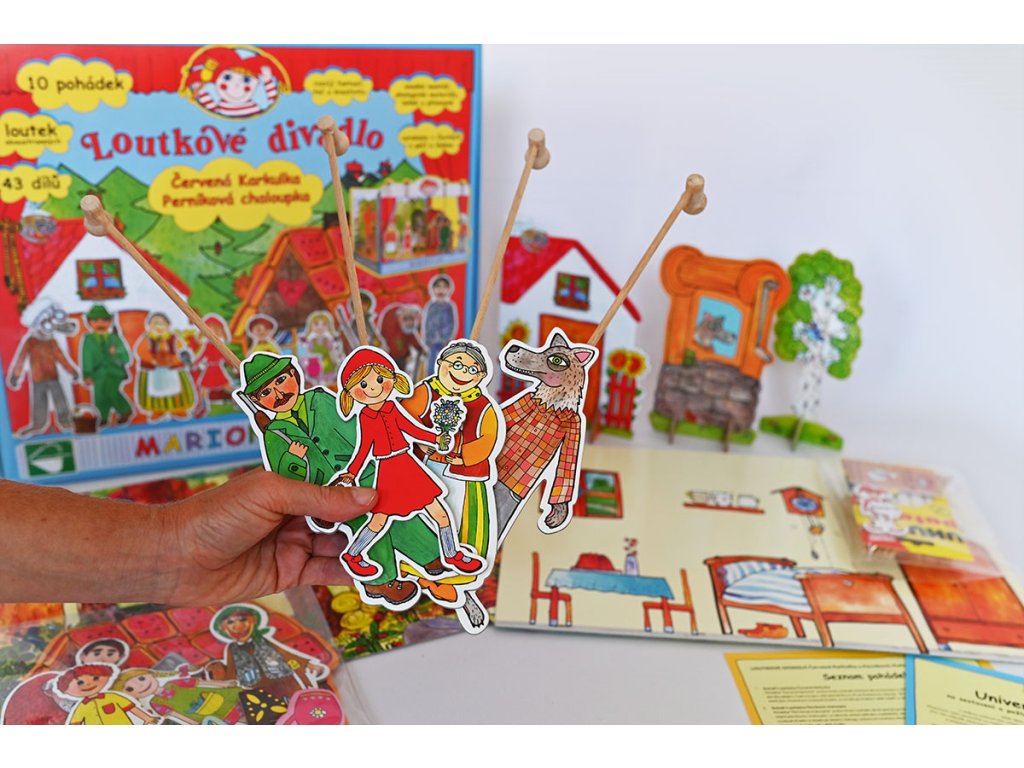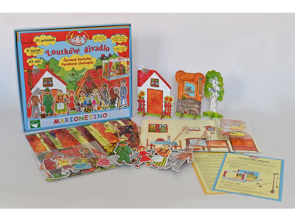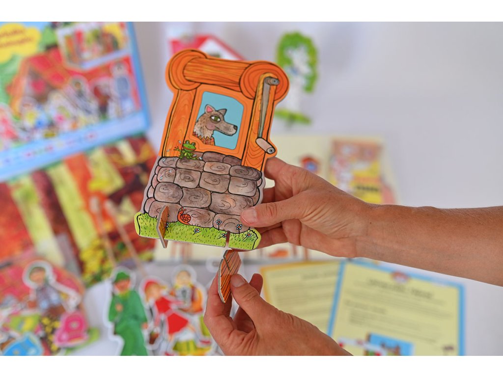 Súčasťou balenia sú bábky, kulisy, rekvizity a scénické doplnky, vďaka ktorým môžu deti hneď začať hrať. Dve rozprávky – Červená Čiapočka a Perníková chalúpka – tvoria základ, z ktorého vzniká viacero príbehov a herných variantov.