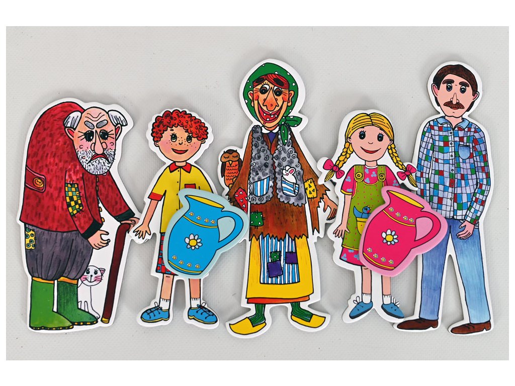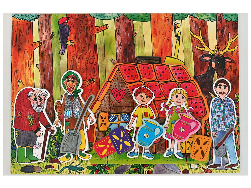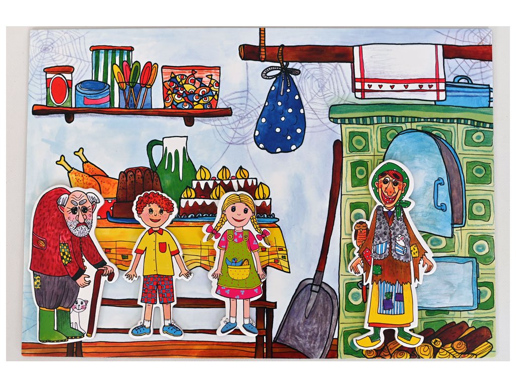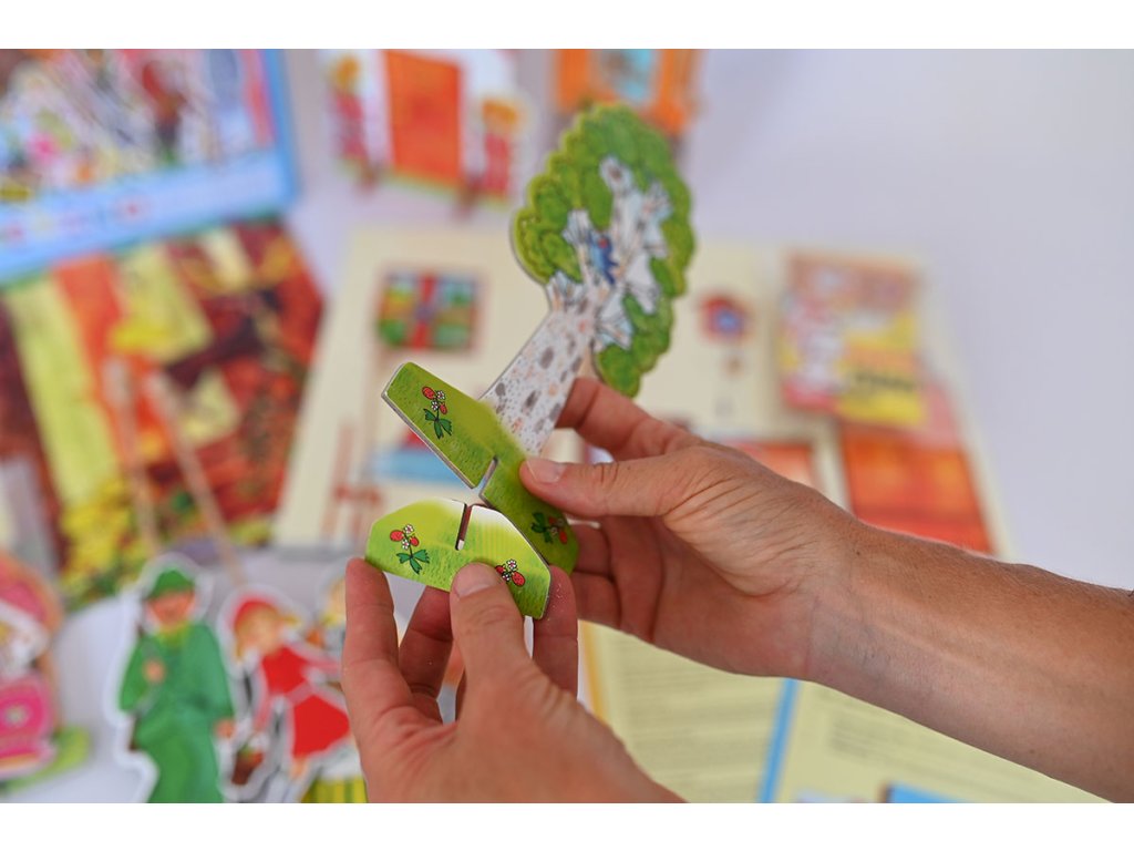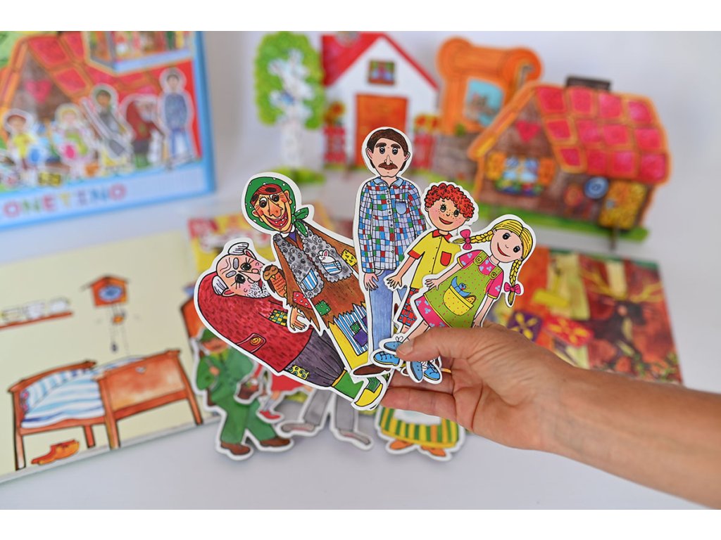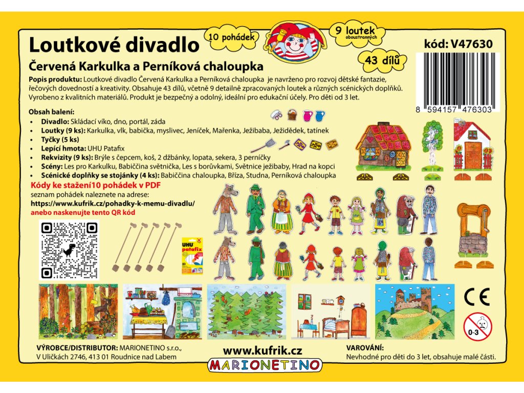 Súčasťou balenia sú bábky, kulisy, rekvizity a scénické doplnky, vďaka ktorým môžu deti hneď začať hrať. Dve rozprávky – Červená Čiapočka a Perníková chalúpka – tvoria základ, z ktorého vzniká viacero príbehov a herných variantov.