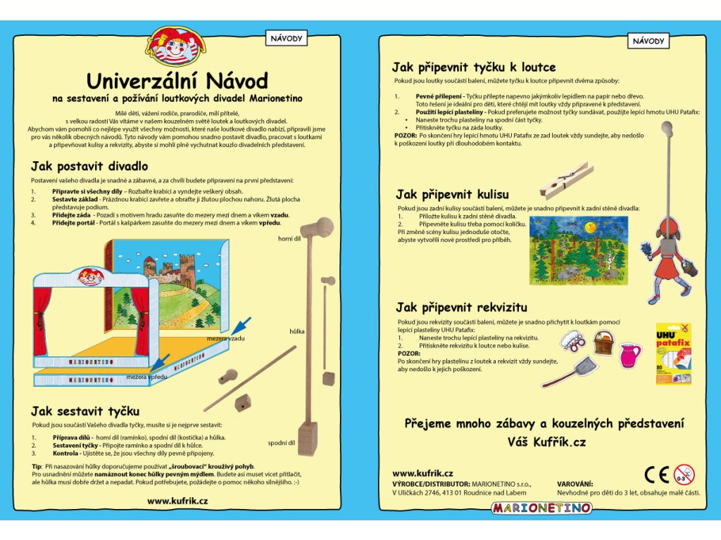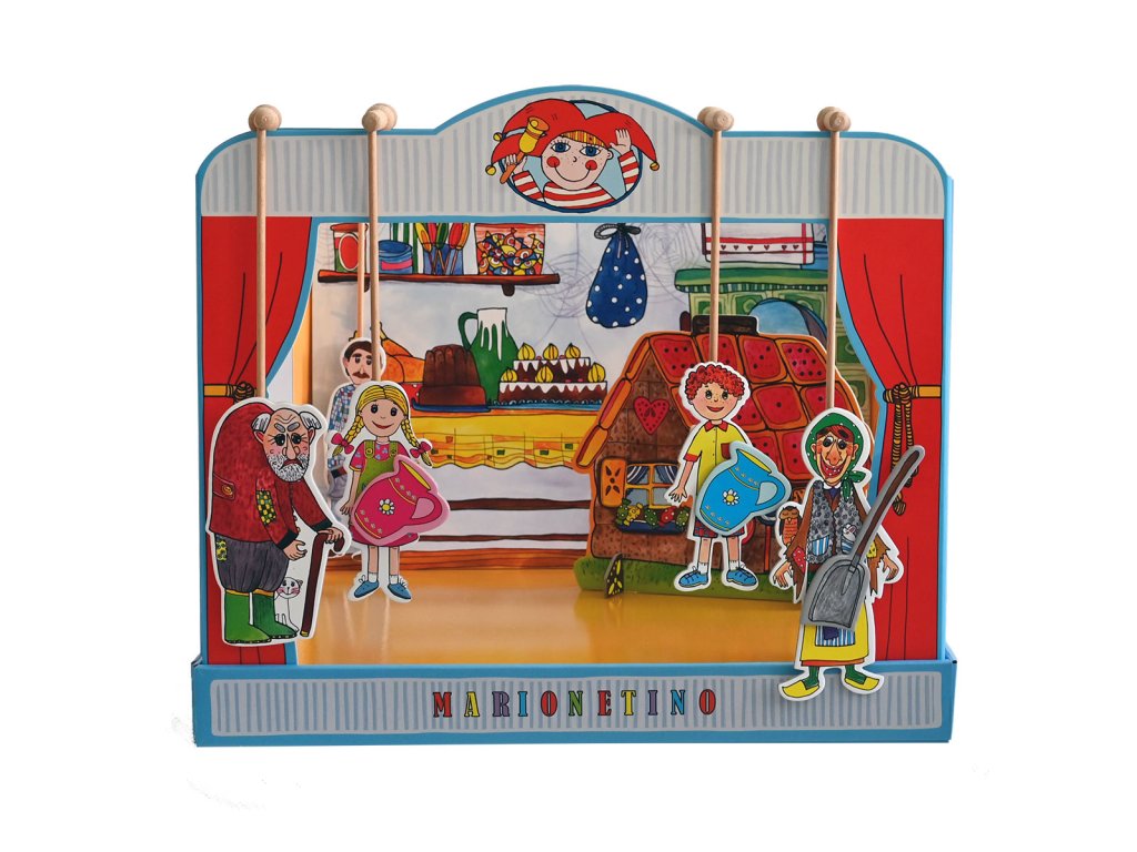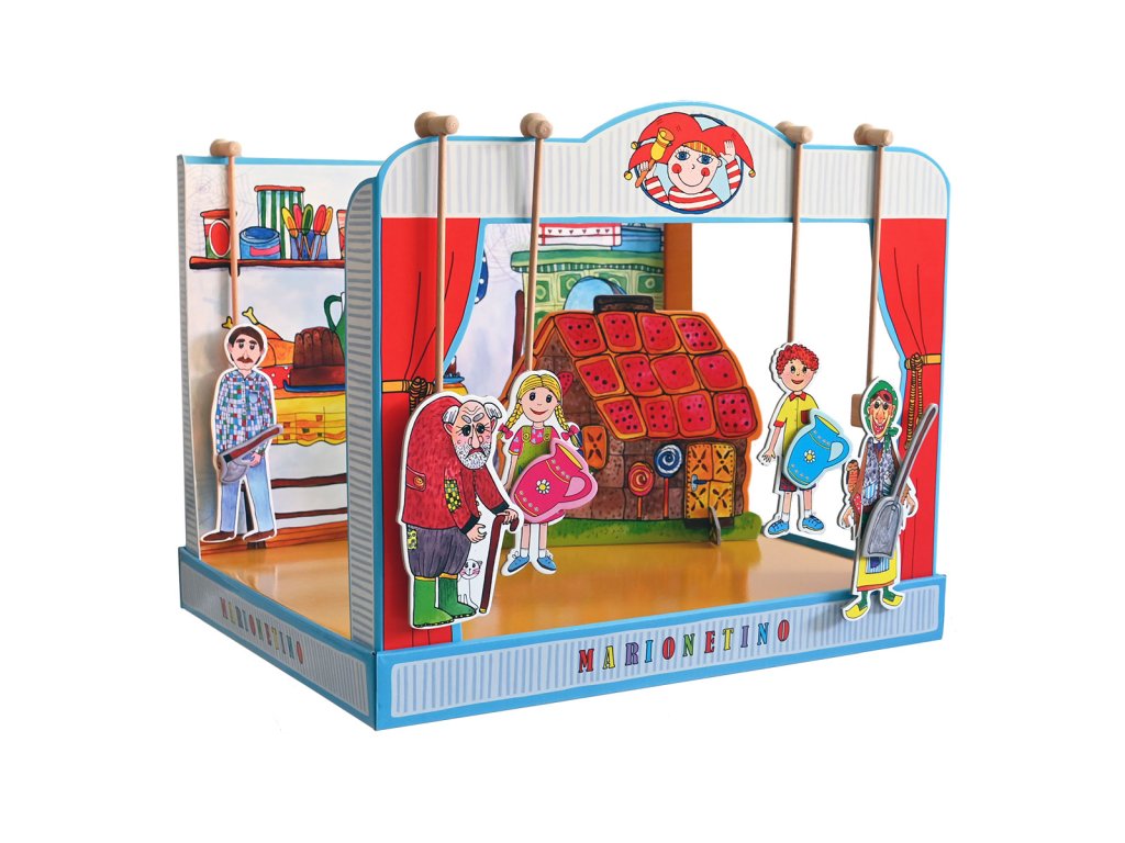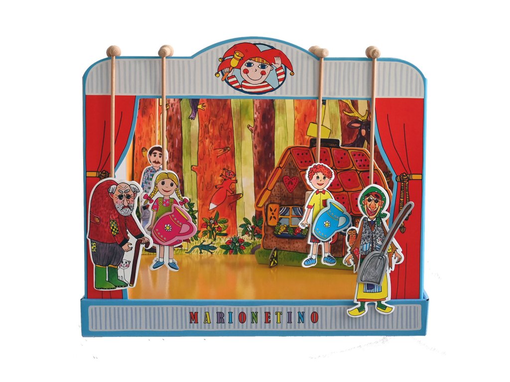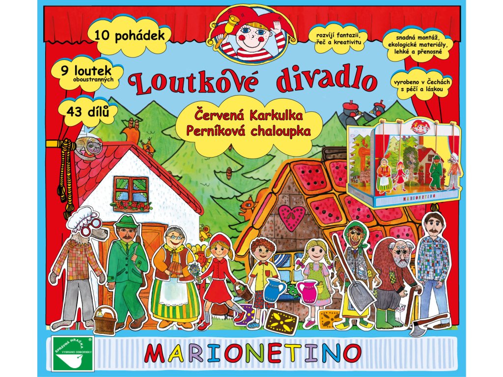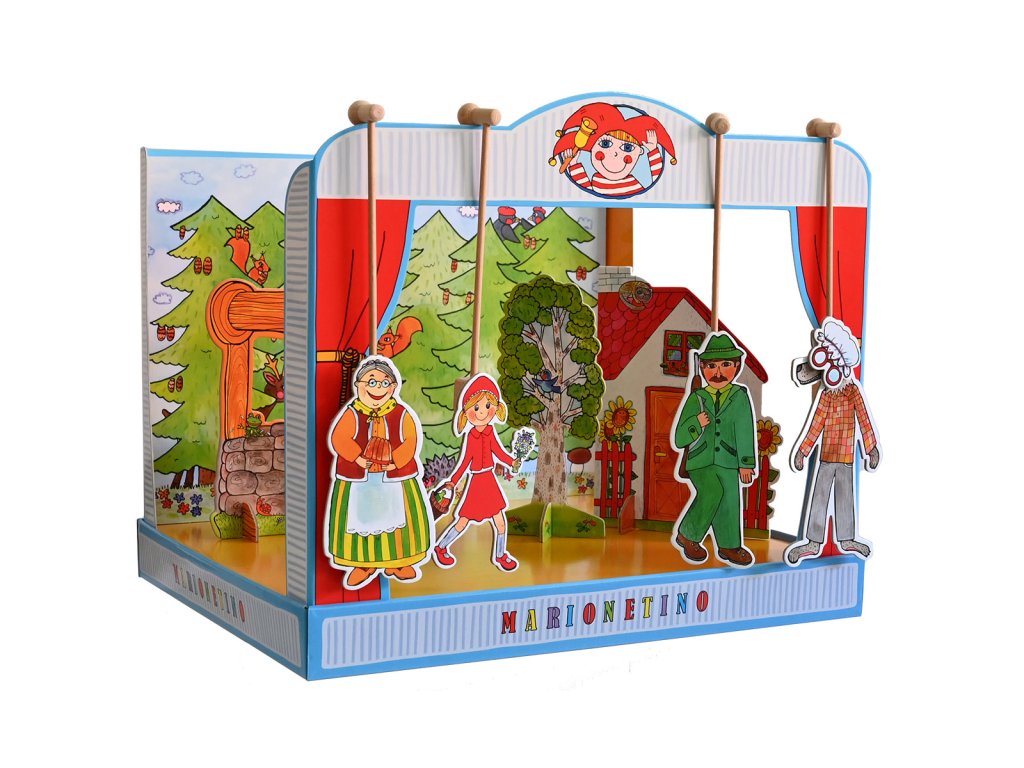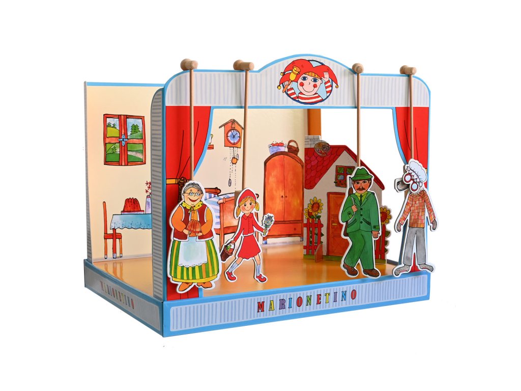 MARIONETINO je kompletný bábkový set, s ktorým si deti môžu samy zahrať známe rozprávky, vymýšľať vlastné príbehy a rozvíjať fantáziu, reč aj tvorivosť. Divadlo sa jednoducho rozloží, rýchlo zloží a zároveň slúži ako praktický úložný box – ideálne doma, na cestách aj v materskej škole.