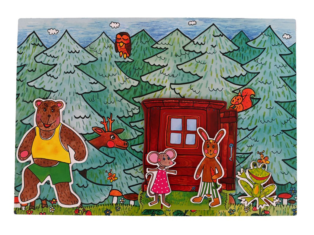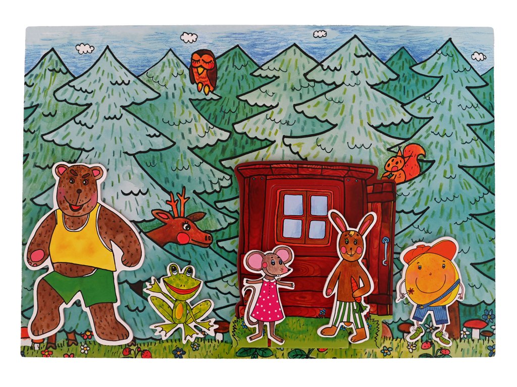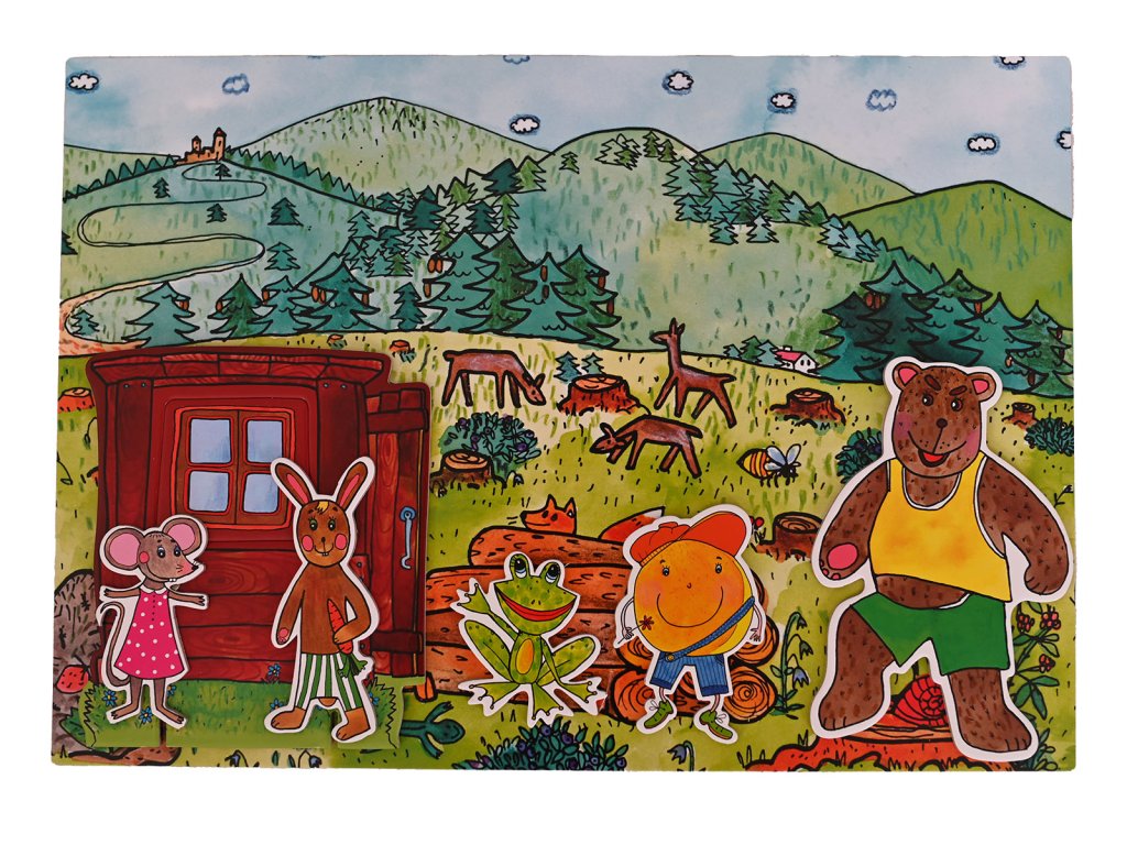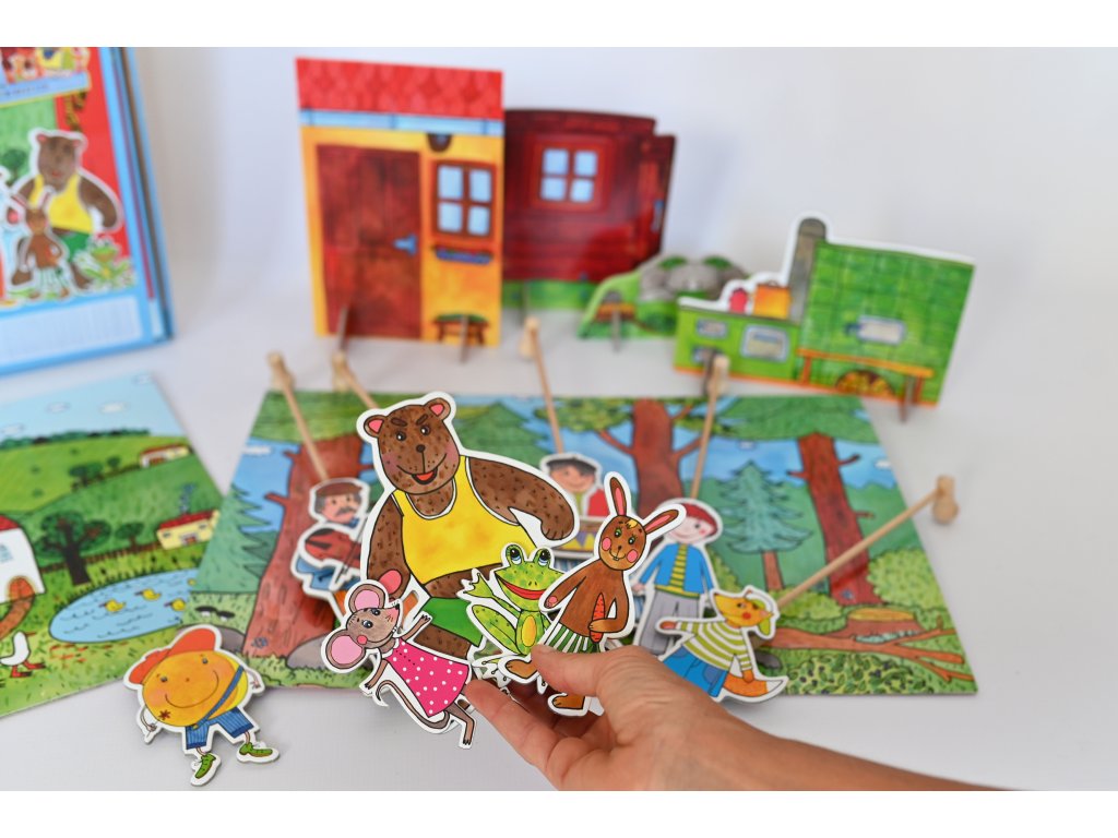 Set podporuje fantáziu, rozprávanie, tvorenie vlastných príbehov a spoločnú rodinnú hru. Bábky aj kulisy sú spracované v hravom výtvarnom štýle a sú vyrobené z pevného ekologického materiálu.