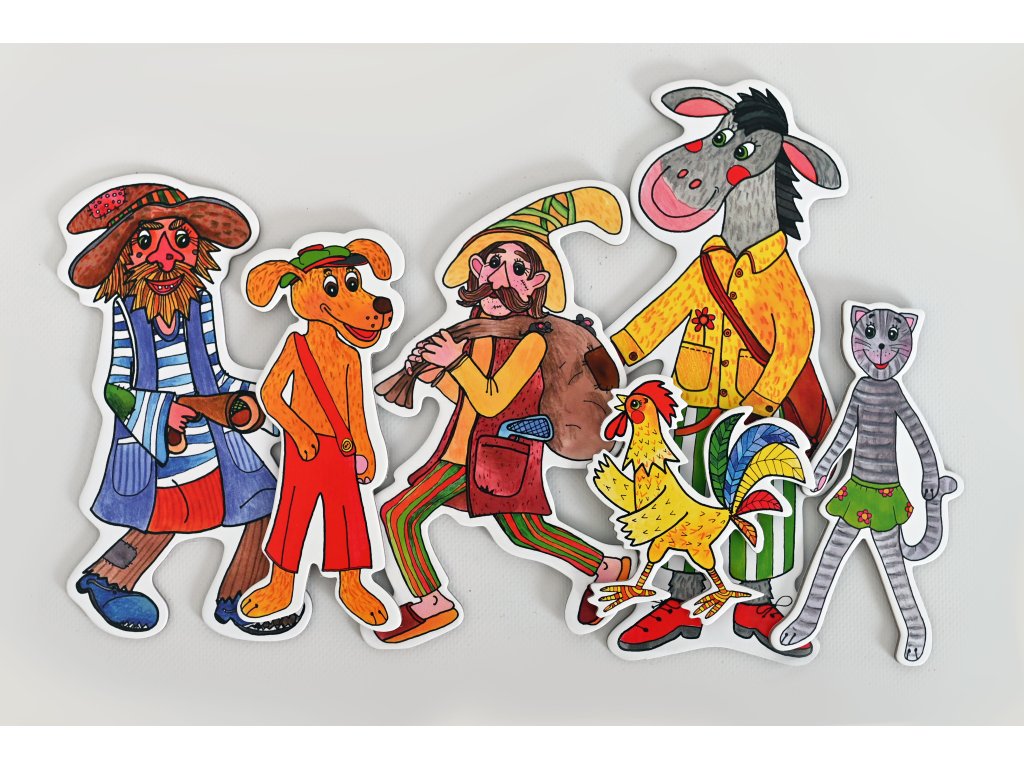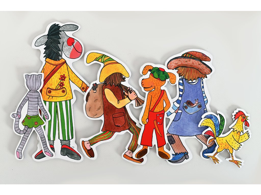 Brémski muzikanti – rozprávka k divadlu (6 bábok) Sada bábok a kulís