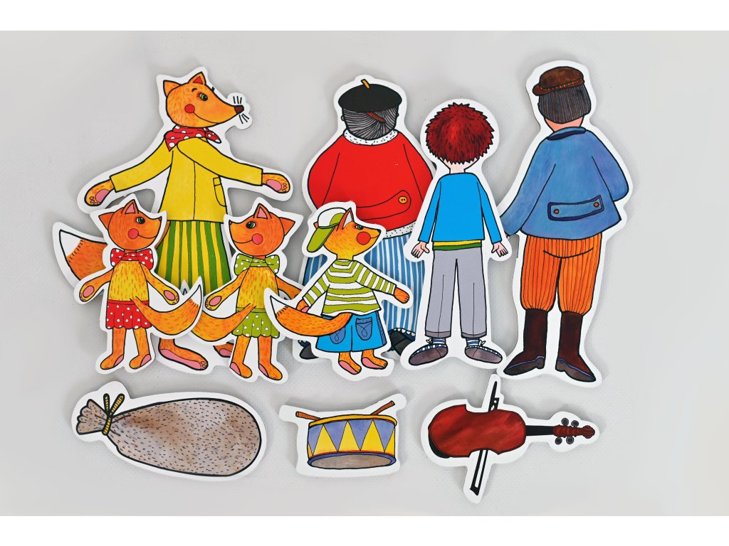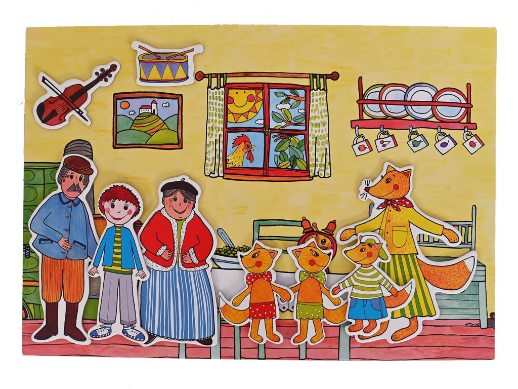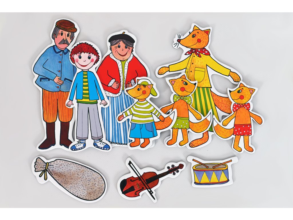 Bábky (7 ks): Budulínek, babička, dedko, mama líška, líščí chlapec, 2 líščie dievčatá
