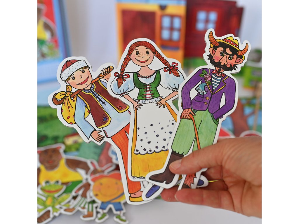 V balení naleznete 3 roztomilé loutky. Děti si s loutkami hrají, povídají, rodiče mohou odvyprávět pohádku. Loutky jsou oboustranné, přední i zadní část je krásně výtvarně zpracována. Loutky si snadno můžete vzít na výlet, na procházku i do přírody, protože nezaberou moc místa, jsou lehké a snadno se vejdou do batůžku.