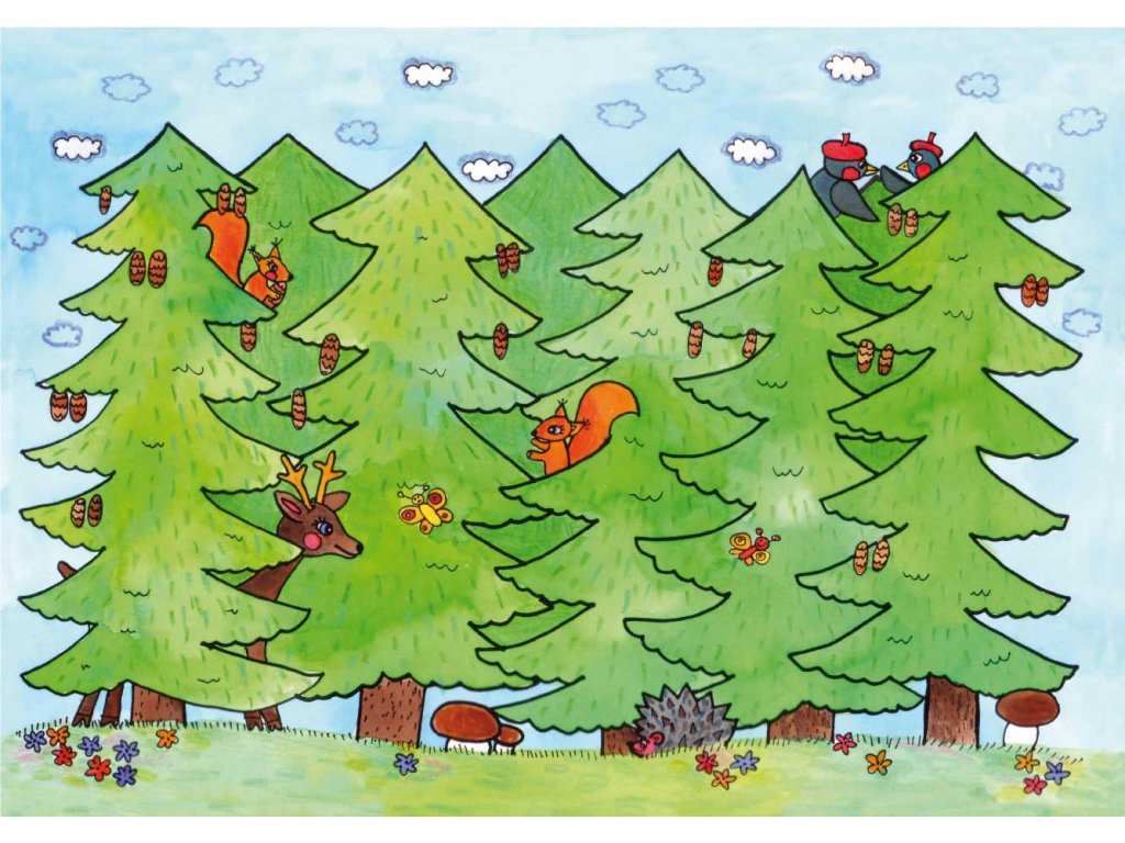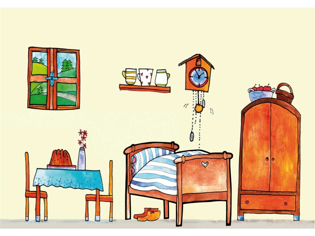 Scény: izbička, les