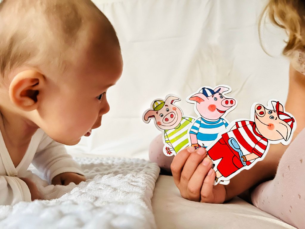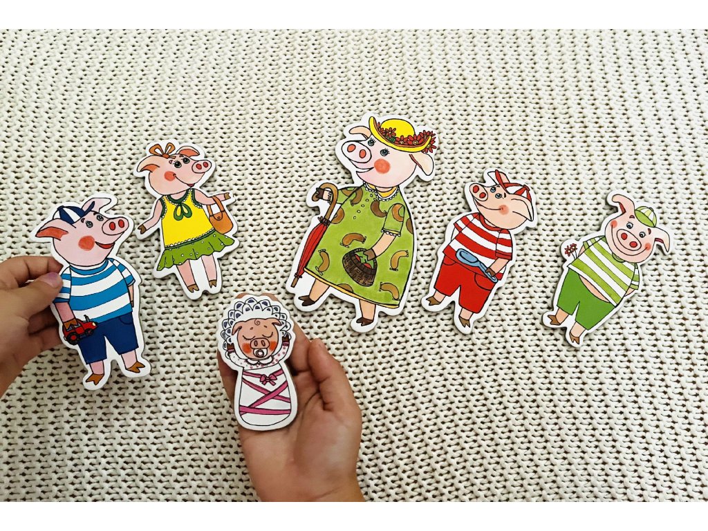 Objevte kouzlo příběhu o Třech prasátkách s naším loutkovým setem. Šest nádherných loutek, včetně maminky prasátka, tří prasečích kluků, holčičky a prasečího miminka, spolu se zlým vlkem, čeká na Vaši fantazii. Vyrobeny z kvalitní ekologické knihařské lepenky, tyto oboustranné loutky jsou ideální pro děti od 3 let. Podporují rozvoj řečových a vyjadřovacích schopností, improvizaci a kreativitu. Užijte si s dětmi společné vyprávění a tvoření příběhů.