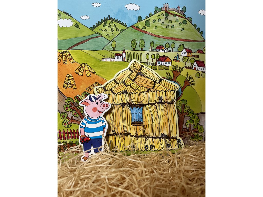 Scénické doplnky: domček zo slamy, dreva a tehál