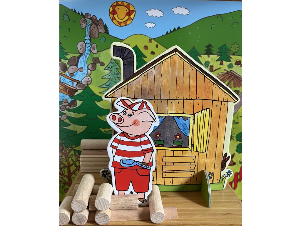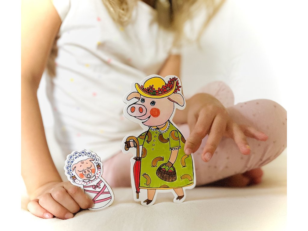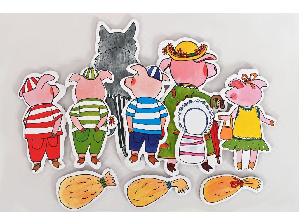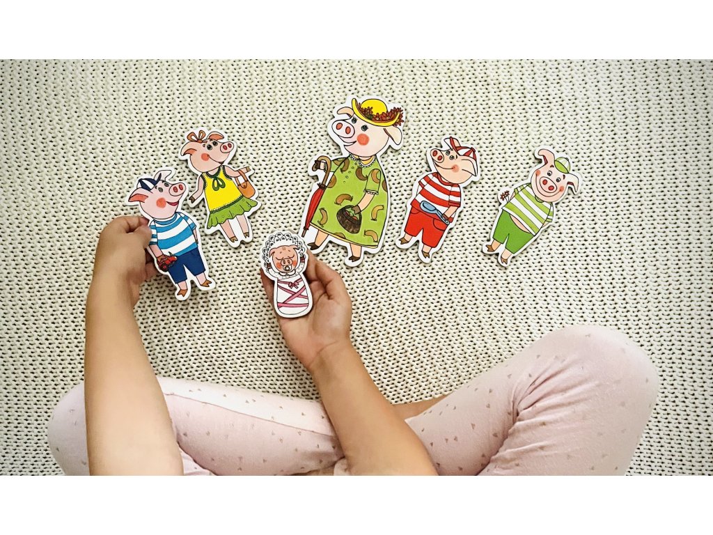 Bábky (6 ks): mama prasiatko, 3 prasiatka, prasiatko dievčatko, prasiatko bábätko, vlk