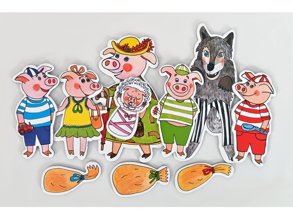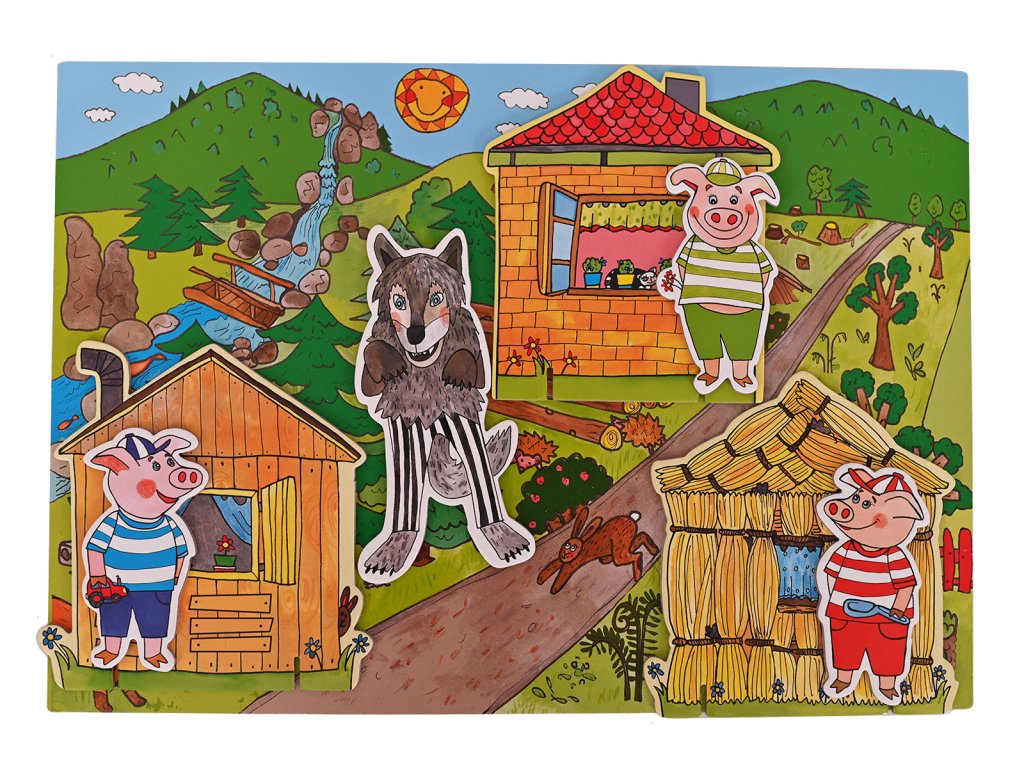 O troch prasiatkach – rozprávka k divadlu (6 bábok) Sada bábok a kulís