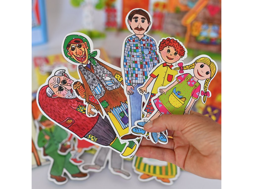 V balení naleznete 5 roztomilých loutek a 2 rekvizity. Děti si s loutkami hrají, povídají, rodiče mohou odvyprávět pohádku. Loutky jsou oboustranné, přední i zadní část je krásně výtvarně zpracována. Loutky si snadno můžete vzít na výlet, na procházku i do přírody, protože nezaberou moc místa, jsou lehké a snadno se vejdou do batůžku.