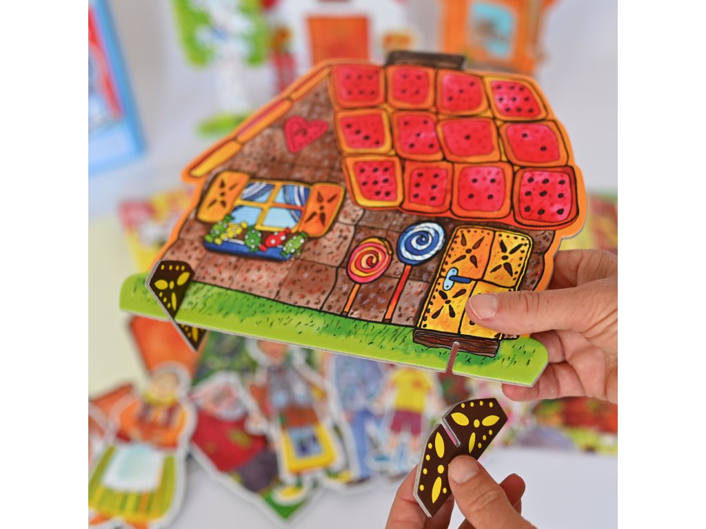 Perníková chalúpka je ikonická kulisa k bábkovému divadlu, ideálna k rozprávke Janko a Marienka. Vytvára okamžite rozpoznateľnú rozprávkovú atmosféru.