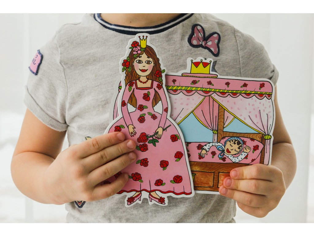 V balení naleznete 2 roztomilé loutky a 2 kulisy. Děti si s loutkami hrají, povídají, rodiče mohou odvyprávět pohádku. Loutky jsou oboustranné, přední i zadní část je krásně výtvarně zpracována. Loutky si snadno můžete vzít na výlet, na procházku i do přírody, protože nezaberou moc místa, jsou lehké a snadno se vejdou do batůžku.