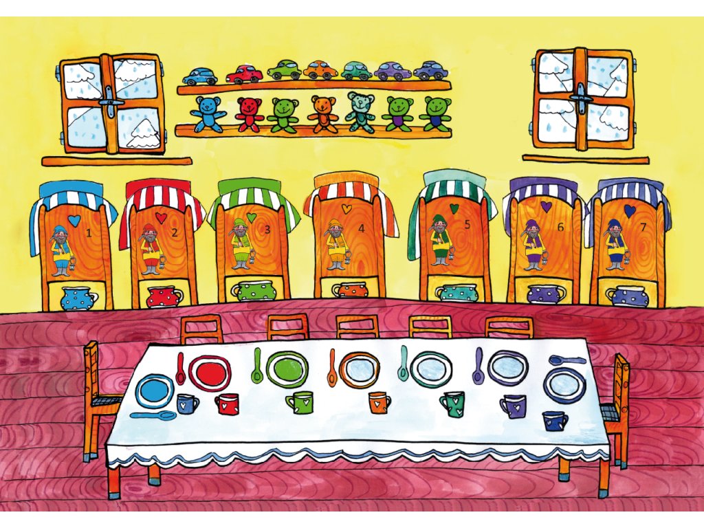 Rozprávka Snehulienka a sedem trpaslíkov v krásnom výtvarnom spracovaní.