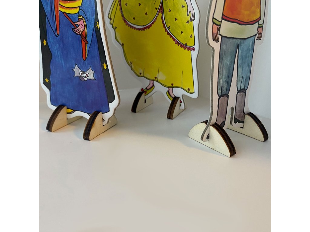 Stojany sa jednoducho nasadia na spodnú časť bábky a umožnia jej pevne stáť na rôznych povrchoch. Sú ideálne na hranie aj vystavenie bábok a uľahčujú manipuláciu počas predstavenia.